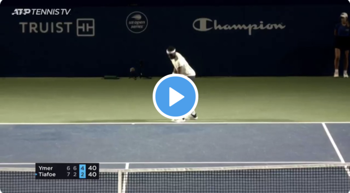 Frances Tiafoe a tenté le fameux service à la cuillère, dans un moment chaud alors qu’il était mené 4–2 dans le dernier set contre Mikael Ymer. Mauvais choix, le toucher n’est pas bon et ne surprend pas le Suédois, dans un fauteuil pour retourner en revers.