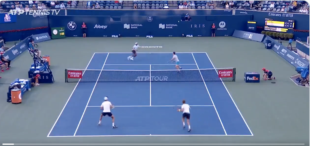 Éliminée en demi‐finales du tournoi de Toronto par Joe Salisbury et Rajeev Ram (6−3, 7–5), la paire Gille/Vliegen a signé un point de folie.