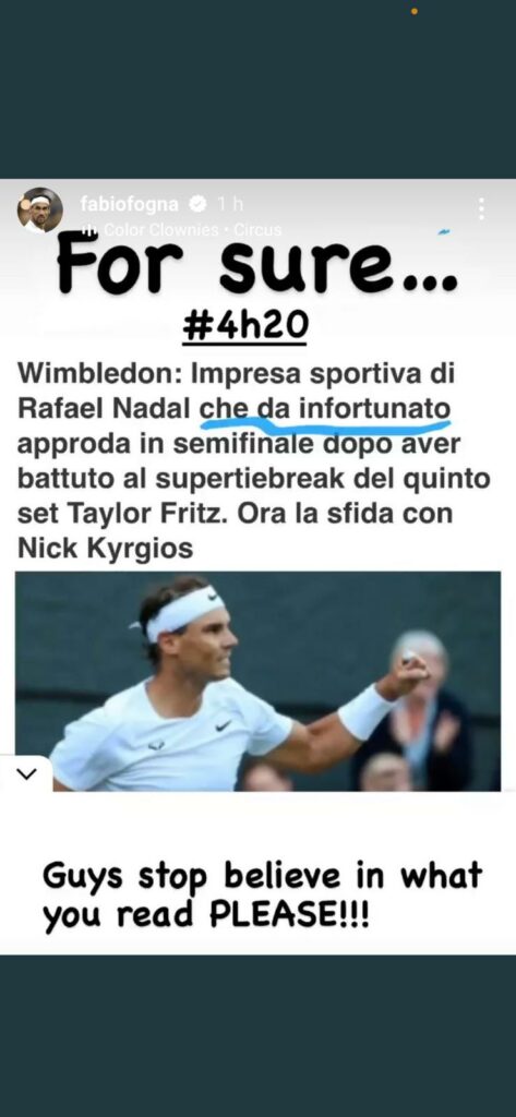 C’est par une simple story sur son compte Instagram que le joueur italien a mis en doute la « sincérité » de Rafael Nadal.