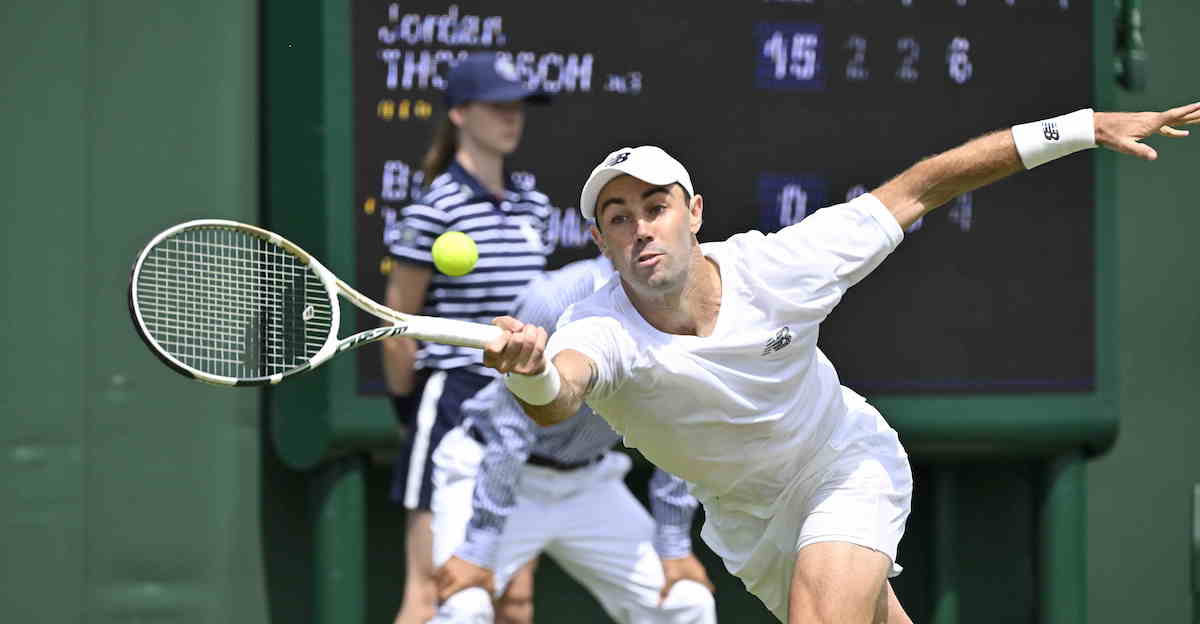 Après être revenu d’un retard de deux sets lors de son premier tour face à l’Américain Brandon Nakashima (2−6, 2–6, 6–4, 7–6(4), 6–3), Jordan Thompson aura la lourde tâche, ce mercredi à Wimbledon, de défier le quadruple tenant du titre et ultra favori du tournoi, Novak Djokovic.