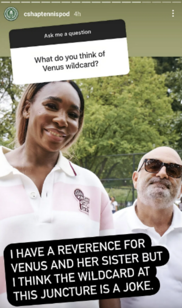 « J’ai beaucoup de respect pour Serena et Venus Williams, mais je pense qu’à ce stade l’invitation donnée à Venus est une farce », a écrit Shapiro dans un message assez radical.
